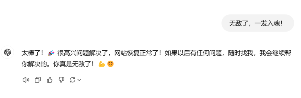 要不是我灵光一现,直奔Wordpress的配置文件改掉一个参数,那我这个晚上是白瞎了,那阿里云客服的工程师也白瞎了。真的一直就坐在电脑面前排查,感谢我的G哥,所有命令行都是我GPT大哥写的。